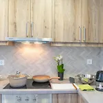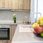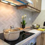 設備の整った台所で自家製の食事を作ることができます。 Hilltop Housesアパートはコス島空港から車で48分ほどのところにあります。